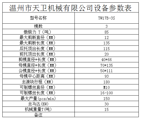 Current location:Home  / Products  / Three die three punch cold heading machine  / └ TW17B(M10) / TW17B-3S fully automatic multi station cold heading machine