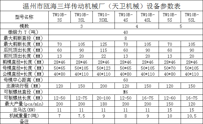 您當前的位置:首頁 / 產品中心 / 四模四沖冷鐓機 / └ TW10B(M6)多工位冷鐓機 / 四模四沖TW10B